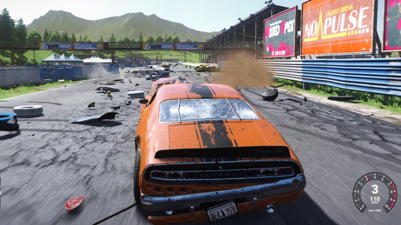 Isso funciona muito bem porque te mantém motivado. Cada corrida rende dinheiro e experiência, e você sente que está evoluindo não só no controle, mas também no próprio veículo. O processo de customização é intuitivo: você melhora o carro e aumenta suas chances de sobreviver às corridas mais caóticas. E, mesmo que você não foque nisso, é divertido ver os carros ficando mais resistentes e mais preparados para o caos total.