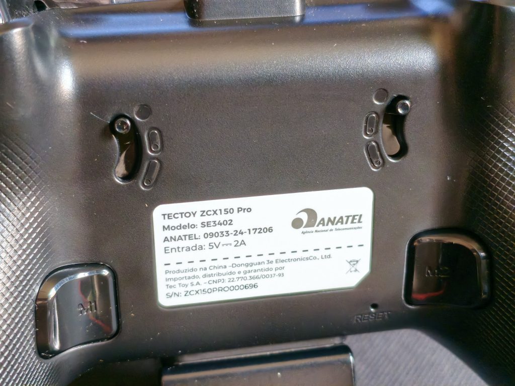 Também há um botão Reset na parte traseira do controle, que, como de costume, é embutido e demanda o uso de um clipe ou daquelas chaves de gavetinha de celular para ser acionado. Aliás, a caixa não inclui uma dessas chaves para o usuário acionar esse botão, o que, se não chega a ser um problema em si, é algo que poderia estar incluso.