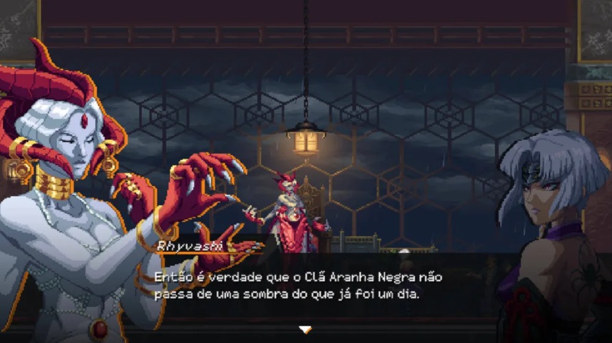 Notei também que as animações das cutscenes estão com aspecto mais limpo. Estão sim mais bem feitas, porém acredito que o visual clean dessas cenas não case tão bem com o restante do pixel art presente no game. Obviamente isso não é um demérito tão grande, apenas uma escolha que achei mais acertada no primeiro game, onde os traços tinham um serrilhado mais coerente com o visual retrô.